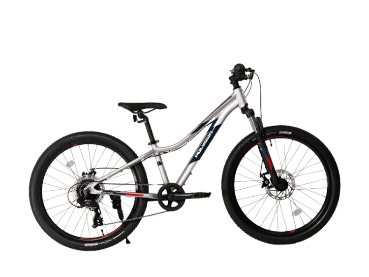 Polygon Relic 24 אופני הרים לילדים עם בולם קדמי, בלמי דיסק ושלדת אלומיניום קלה. שליטה ובטיחות לרוכבים צעירים.