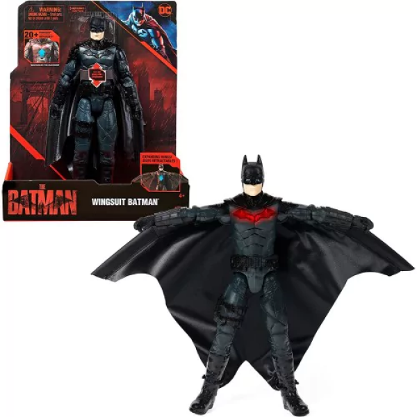 דמות אקשן מרשימה של באטמן עם חליפת כנפיים נפתחת, להפליג איתה לקרבות אקשן בגות'האם!