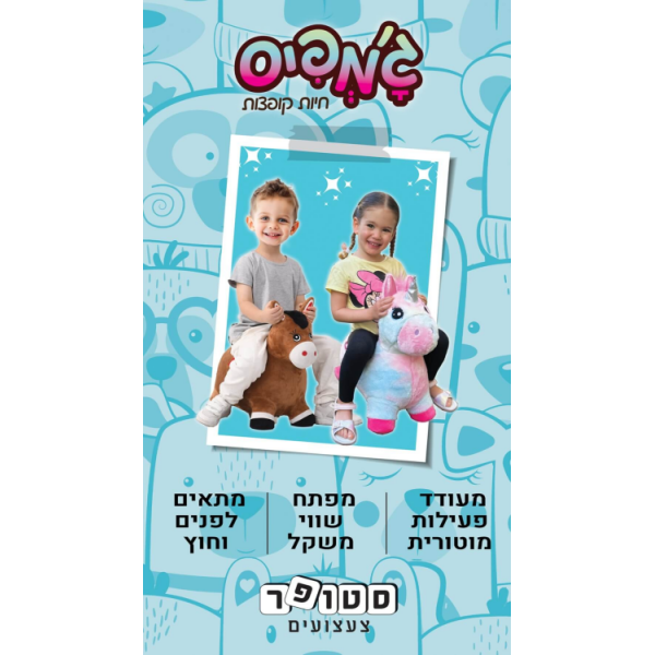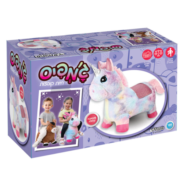 ג’מפיס – חיה קופצת, קסומה ומרגשת. הילדים רק רואים, נוגעים ומתאהבים. ניתן לרכב על ג’מפיס גם בבית וגם בחוץ. הג’מפיס מכוסה בקטיפה רכה, הניתנת להסרה וקלה לניקוי. הוא עשוי מחומר בטוח, חסר ריח, עבה ועמיד. ג’מפיס קל לאחיזה והילדים נשארים יציבים עליו בזכות חומר נגד החלקה. מתאים לילד עד משקל 50 ק”ג. ניתן להסיר את הכיסוי ולכבס. רכיבה על ג’מפיס עוזרת לדמיון לעבוד שעות נוספות, לחזק את השרירים וללמוד לשמור על שיווי משקל. ילדים מתחת לגיל שנתיים צריכים תמיד השגחה ישירה של מבוגר.