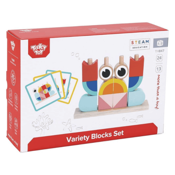 Tooky Toy Crabbie Wooden Block Set הוא צעצוע עץ יצירתי ומעניין, המיועד לפתח את הכישורים הקוגניטיביים והמוטוריים של ילדים צעירים. הערכה כוללת בלוקים צבעוניים שניתן למיין ולסדר, ומאפשרת לילדים ליצור צורות שונות בצורה חווייתית. הבלוקים מעוצבים בצורת סרטן, מה שהופך את המשחק למהנה ויזואלית ומרגש במיוחד עבור ילדים.