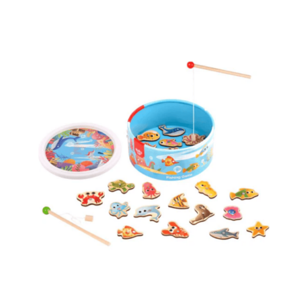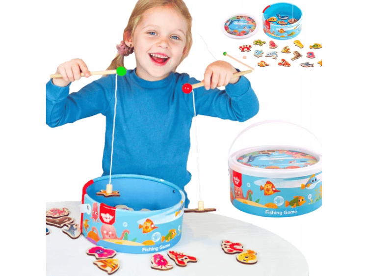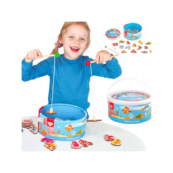 המשחק כולל לוח עץ עם 22 חלקים צבעוניים המייצגים בעלי חיים ימיים, כגון דגים, צבים, דולפינים ועוד. כל חלק מצויד במגנט, והילדים יכולים להשתמש במקלות דייג מגנטיים כדי "לדוג" את בעלי החיים. המשחק מעודד פיתוח מיומנויות מוטוריות עדינות, קואורדינציה בין יד לעין, סבלנות וריכוז.