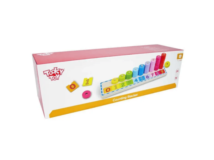 מגדל ספירה מעץ מבית Tooky Toy. מגדל ספירה מעץ הוא צעצוע חינוכי המיועד לילדים מגיל שנתיים ומעלה, המסייע בפיתוח מיומנויות מוטוריות עדינות, תפיסה מרחבית והבנת מושגים מתמטיים בסיסיים.