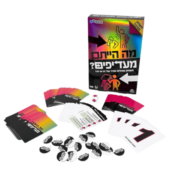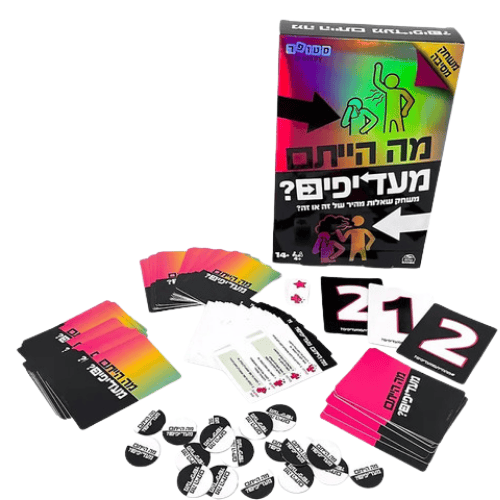 "מה הייתם מעדיפים?" הוא משחק קופסה היסטרי שמייצר אווירה קלילה ומעוררת דיון מושלם למסיבות, ערבי גיבוש או סתם ערב משפחתי.