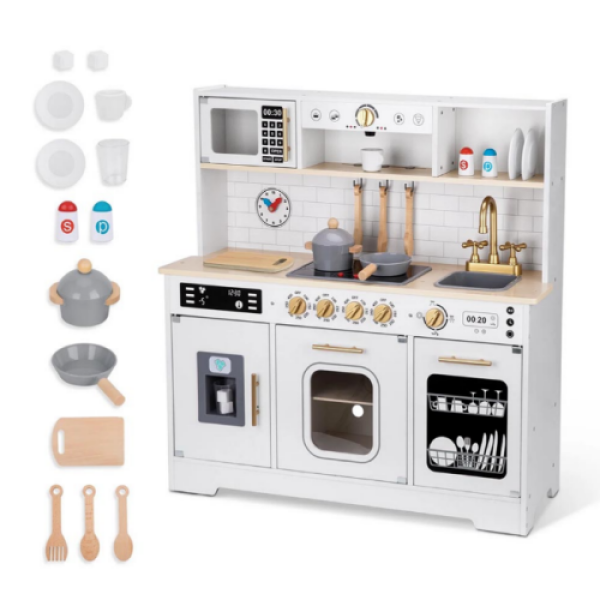 הכירו את סט המטבח מעץ TookyToy – שבו יצירתיות פוגשת חדשנות עבור שפים צעירים! מעוצב עם צבע לא רעיל ועץ פרמיום, סט מטבח זה מציע חווית משחק. שפים מתחילים ימצאו עולם קולינרי מאובזר. סיר אינדוקציה קול ואור. סובב את כפתור צליל הלחיצה בתנור לחוויית בישול אותנטית זו. כולל מיקרוגל, ארונות, כיור מטבח, תנור, מדיח כלים, מקרר, מכונת קרח, מכונת קפה וכיריים אינדוקציה, סט זה מעורר משחק דמיון אינסופי. בנוסף, 16 אביזרים להשלמת חווית השפים המתהווה שלך. עודדו את החלומות הקולינריים של ילדכם והציתו את היצירתיות שלהם עם ערכת המטבח הרב-תכליתית מעץ כאשר כל שעת משחק היא הרפתקת גורמה! גיל: 3 שנים + גודל מורכב: 88 x 30 x 88 ס"מ
