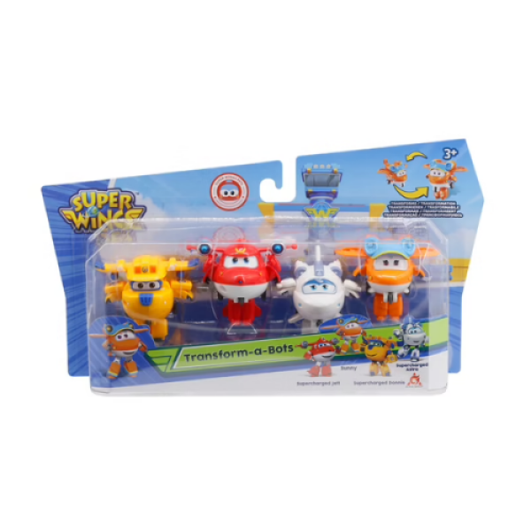 מארז של 4 דמויות הניתנים לשינוי. הדמויות הופכות מרכב (מטוס/מסוק) לרובוט .