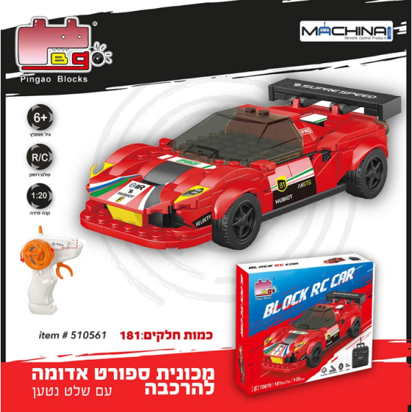 ערכת בנייה מרתקת של מכונית ספורט אדומה מבית Pingao ומותג COME ALIVE כוללת 181 חלקים להרכבה מדויקת וחווייתית. לאחר ההרכבה, שלטו ברכב באמצעות שלט אלחוטי כלול ונטען, וגלו עוצמה וביצועים מרשימים בקנה מידה של 1:20. עיצוב ספורטיבי, שלט קל לתפעול, ומתנה מושלמת לחובבי מרוצי מכוניות קטנים.