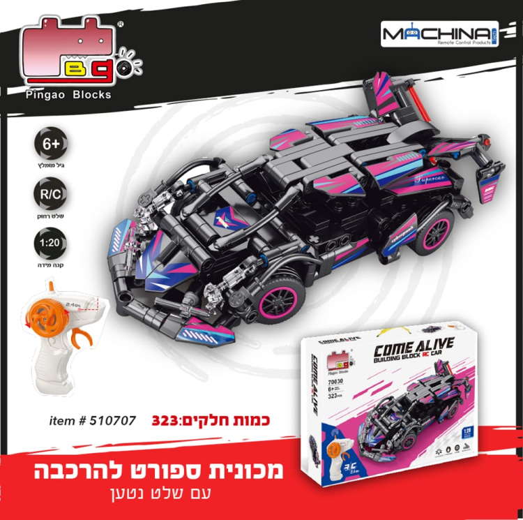 מכונית שלט בעיצוב עתידני להרכבה עצמית חוויית בנייה מהנה ומשחק מרתק עם שלט עוצמתי בטכנולוגיית 2.4GHz!