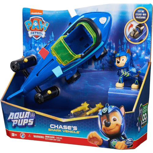 כולל את הדמות CHASE כ- 6 ס"מ ורכב כחול עם גג נפתח בדמות כריש כ 22 ס"מ.