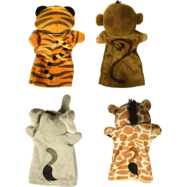 סט כולל 4 בובות יד (פיל, ג'ירפה, קוף, נמר)