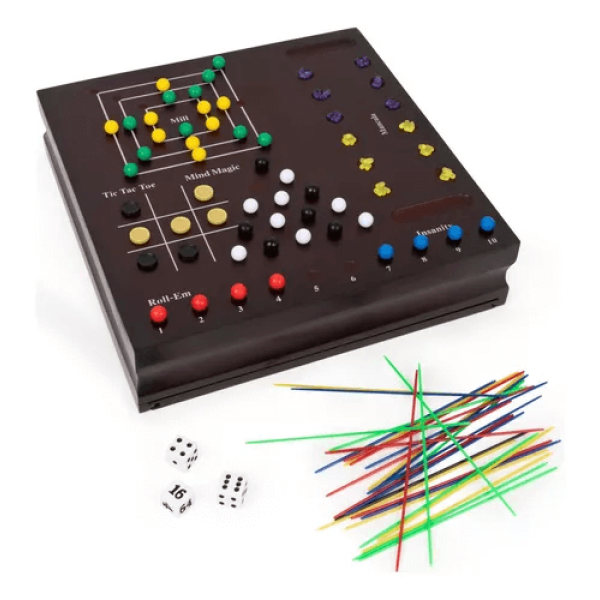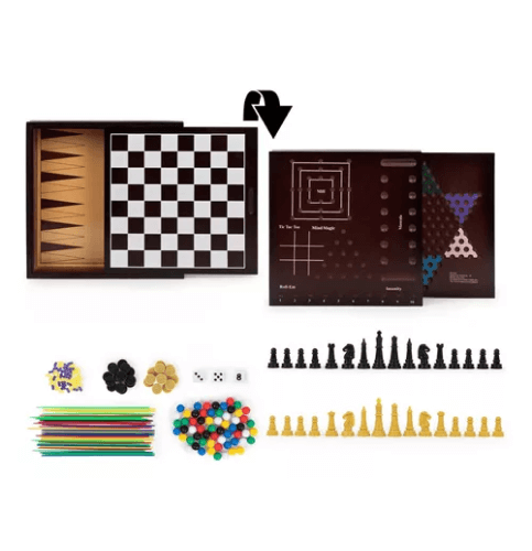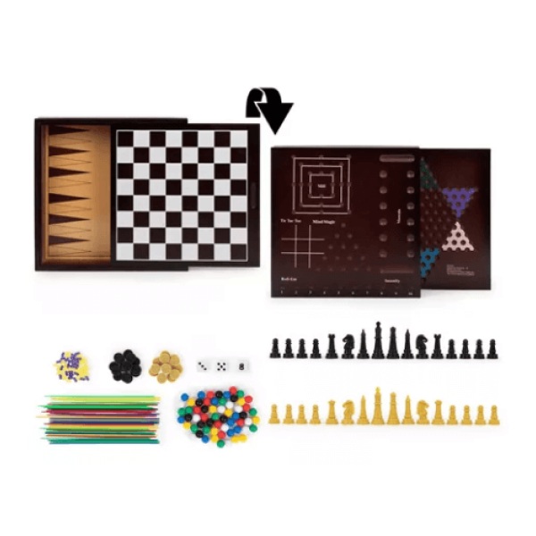 כל משחקי הקלאסיקה בקופסה אחת! סט איכותי מעץ עם שחמט, דמקה, שש-בש ועוד שעות של הנאה לכל המשפחה.