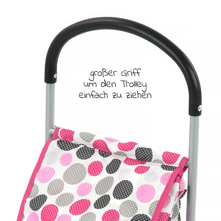 עגלת הקניות מבית hauck היא עגלה לילדים מגיל 3 ומעלה. עם עגלת המשחקים, בנות ובנים יכולים לחקות משחק תפקידים בקניות וגם לשנע דברים רבים אחרים. כאשר לא בשימוש, העגלה יכולה להיות גם מיכל שימושי לצעצועים או מקופלת כדי לחסוך במקום. מסגרת קלה, מנגנון קיפול גלגלים בקוטר 9 ס"מ, ידית אחיזה רכה בד ניתן להסרה ולכביסה בגובה 53 ס"מ משקל : 0.52 ק"ג מידות:(L/W/H): 23 x 30 x 53 ס"מ מידות מקופל: (L/W/H): 53 x 30 x 9.5 ס"מ