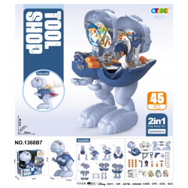 2 ב 1 גם בובות דינוזאור וגם לשחק בארגז כלים, ניתן לפרק ולהרכיב את הדינוזאור.