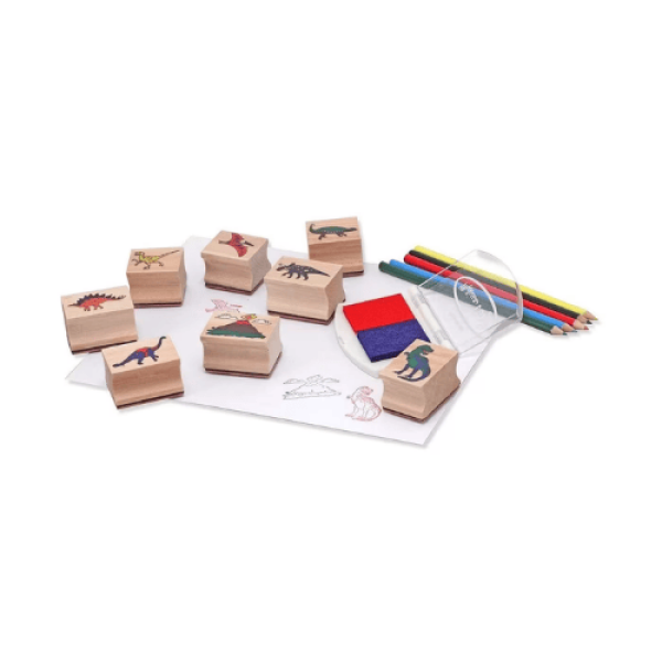 ערכת החותמות של Melissa & Doug בנושא דינוזאורים מאפשרת לילדים ליצור אינספור תמונות וסיפורים בעזרת מגוון חותמות איכותיות ועמידות.