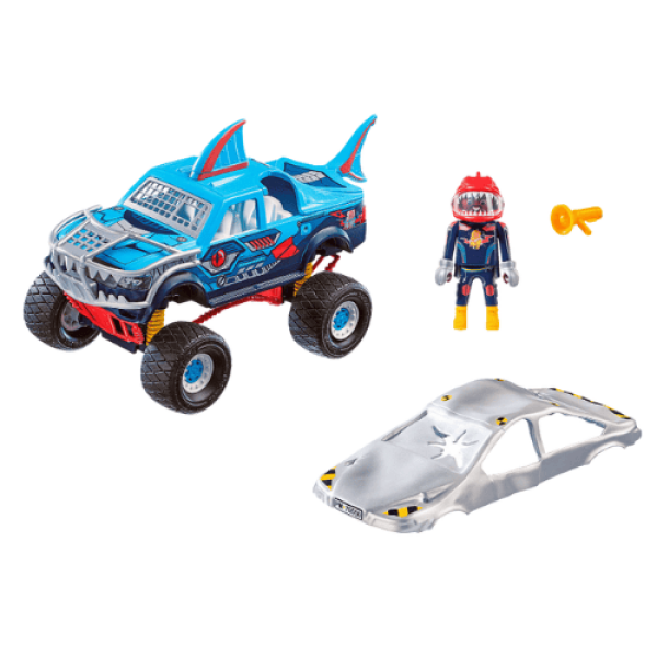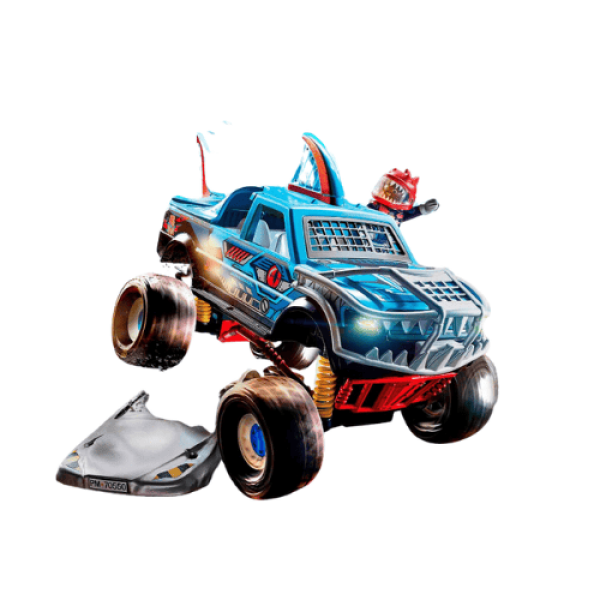 הסט כולל משאית פעלולים עוצמתית עם צמיגים ענקיים, עיצוב כריש מרשים ורכב נוסף שמתרסק לקרקע כל זה נועד להבטיח חוויה מלאת אדרנלין, יצירתיות ודמיון.