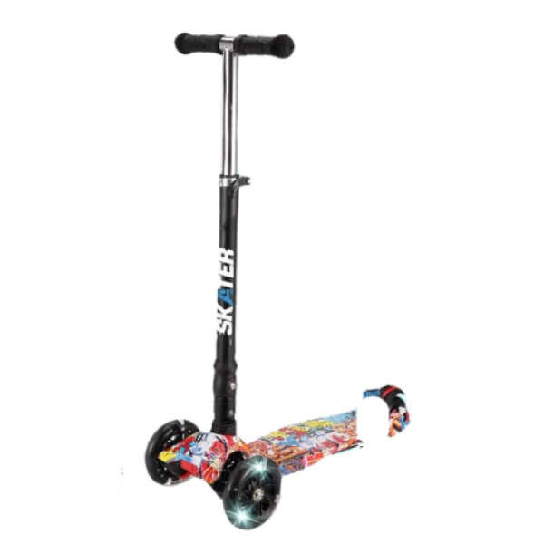 קורקינט לילדים 3 גלגלים עם הדפס גרפיטי מגניב. לגילאי 3 + קיפול קל ונוח לנשיאה. חזק במיוחד עד משקל 50 ק"ג. גלגלי סילקון גדולים 120 מ"מ הכוללים מסבים איכותיים מסוג ABEC 7 כולל אורות בגלגלים. כידון מתכוונן 3 שלבים המגיע ל 70 ס"מ מהמדרך עמידה.