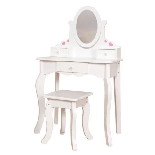 שידת איפור לבנה מעץ לילדים דגם סיגל