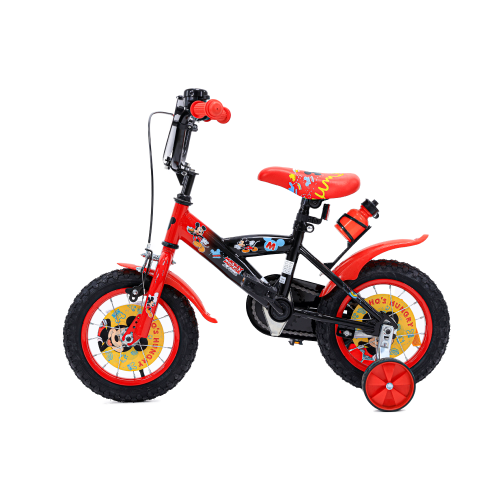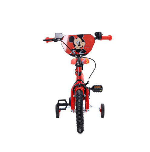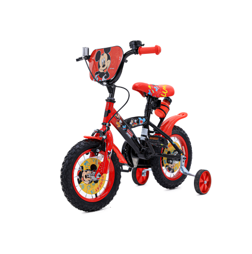 אופני ילדים מידה 12 בעיצוב מדליק של מיקי מאוס . כוללים גלגלי עזר הניתנים להסרה . מעוצר רגל (אחורי) ומעצור יד (קידמי) לעצירה בטוחה . מחזירי אור בגלגל קדמי ואחורי . מושב האופניים ניתן לכוונון ולהתאמה לגובה הילד/ה . גלגלים עבים לנסיעה חלקה ובטוחה . כולל מתקן לבקבוק מים המגיע עם בקבוק תואם . מגן רוח ומגן שרשרת מעוצבים בדמות מיקי מאוס. כידון שניתן לכוונון ואוכף נוח