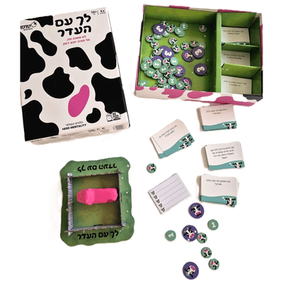 כולל: כרטיסי שאלות, לוח ניקוד, עטים ופרה ורודה אחת מצחיקה במיוחד