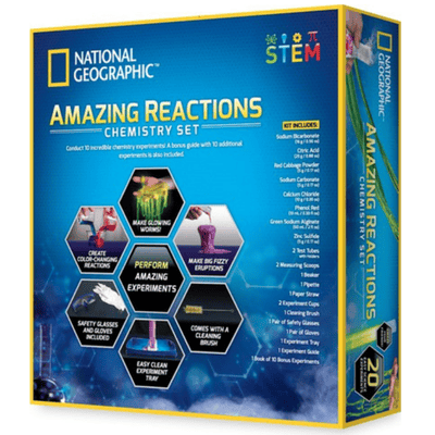 ערכת ניסויים בכימיה לילדים מבית National Geographic הכוללת 10 ניסויים מרהיבים. חוויה מדעית אמיתית עם תגובות כימיות מפתיעות ולמידה חווייתית.